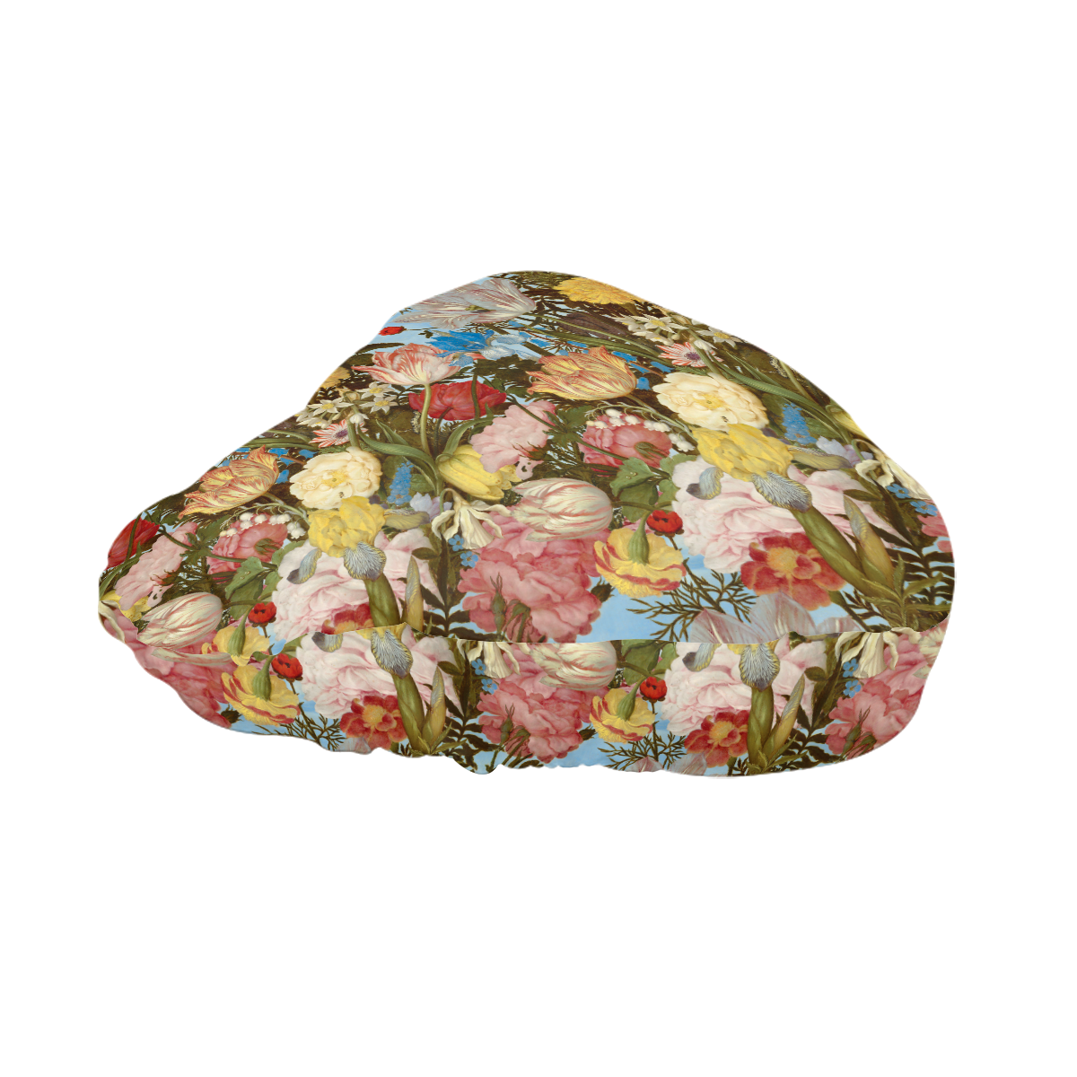 Deze zadelhoes voor de fiets is geïnspireerd op een van de vele vrolijke bloemenschilderijen die de Nederlandse schilder Ambrosius Bosschaert in zijn leven (1573-1621) schilderde. In dit schilderij heeft hij meer dan 30 verschillende bloemsoorten gedetailleerd en kleurrijk in beeld gebracht.