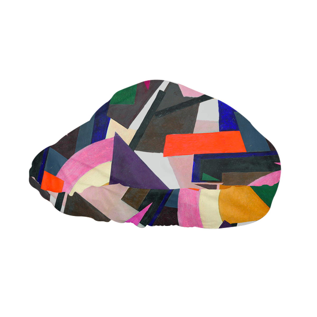 Deze zadelhoes is geïnspireerd op een collage van de Russische schilder Olga Rozanova uit het begin van de 20e eeuw. Ze noemde haar collages 'paste-ons': een combinatie van vlakken, lijnen en schijven en geen enkele incorporatie van echte objecten. Rozanova maakte deel uit van de 'Supremus', een groep avant-gardekunstenaars (onder leiding van Malevich) die kunst veranderden in een kosmische confrontatie van geometrische vormen, waarbij ze alle academische kunstregels omverwierpen.
