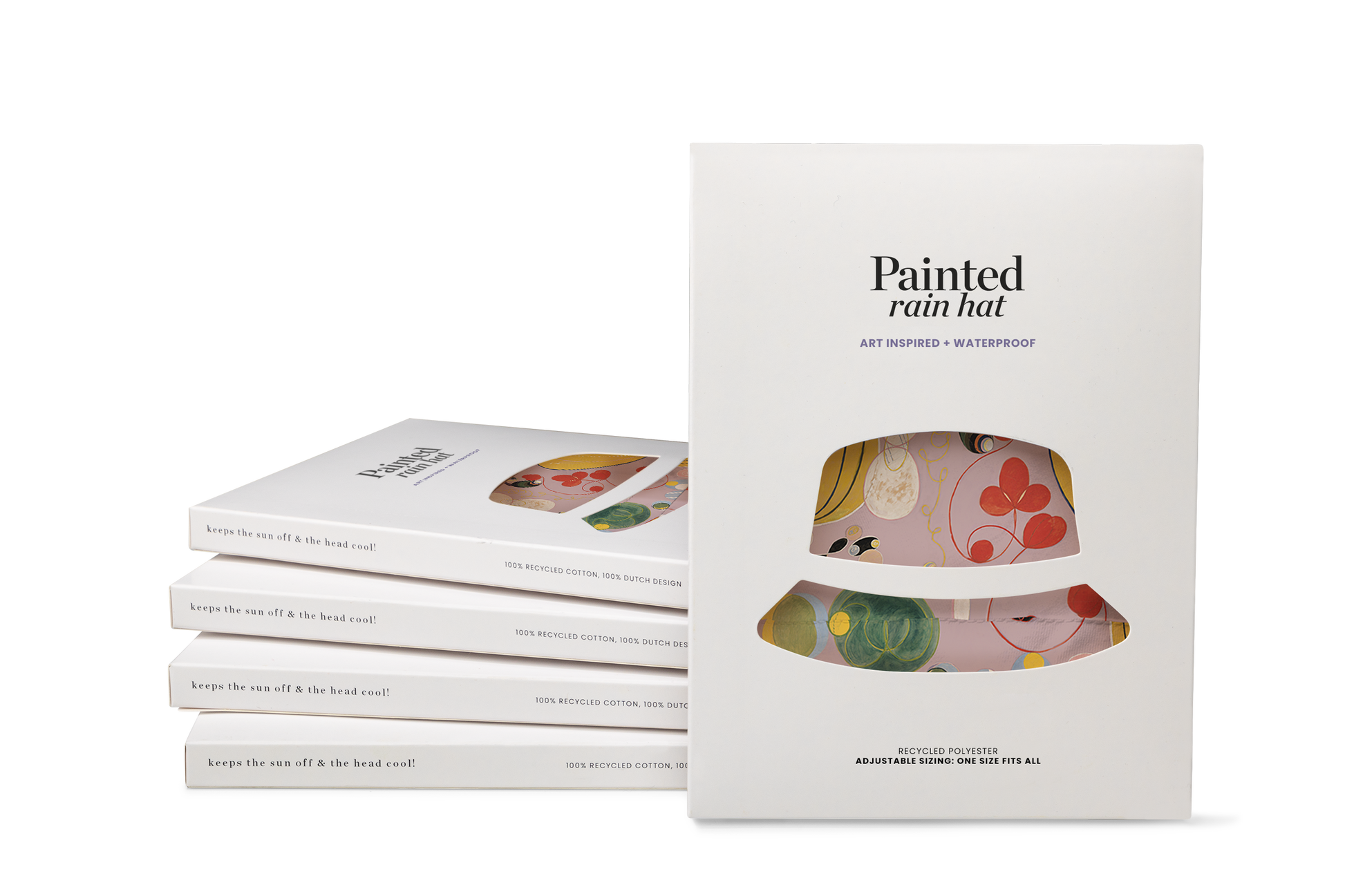 Deze regenhoed is geïnspireerd op Schilderij nr. 7, onderdeel van een serie van tien muurgrote schilderijen die de Zweedse schilder Hilma af Klint maakte voor een tempel (die nooit gebouwd werd). Af Klint was geïnteresseerd in spiritualisme en het onderbewustzijn. Ze was een van de eerste kunstenaars die experimenteerde met automatisch tekenen, een techniek waarbij de kunstenaar haar hand vrij over het papier laat bewegen zonder bewuste controle.