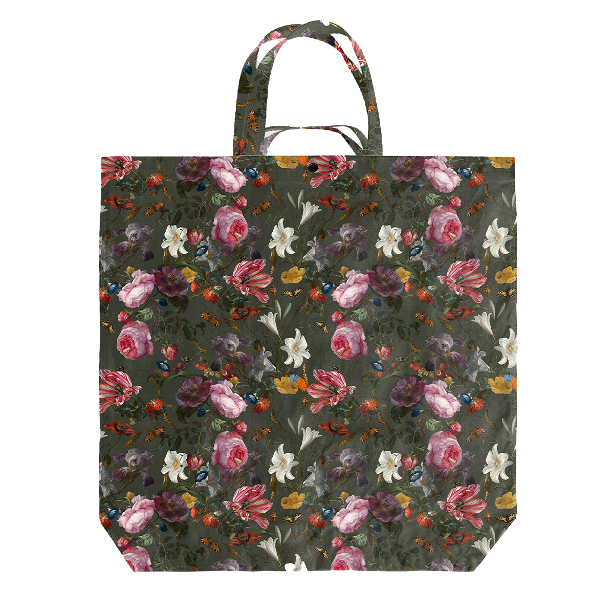 This big shopper is inspired by a 17th century flower still-life by Jan Davidsz. De Heem. Where his predecessors created rather stilted flower compositions, De Heem painted real floral explosions - exotic and colourful with flowers at random, all very expressively arranged.
