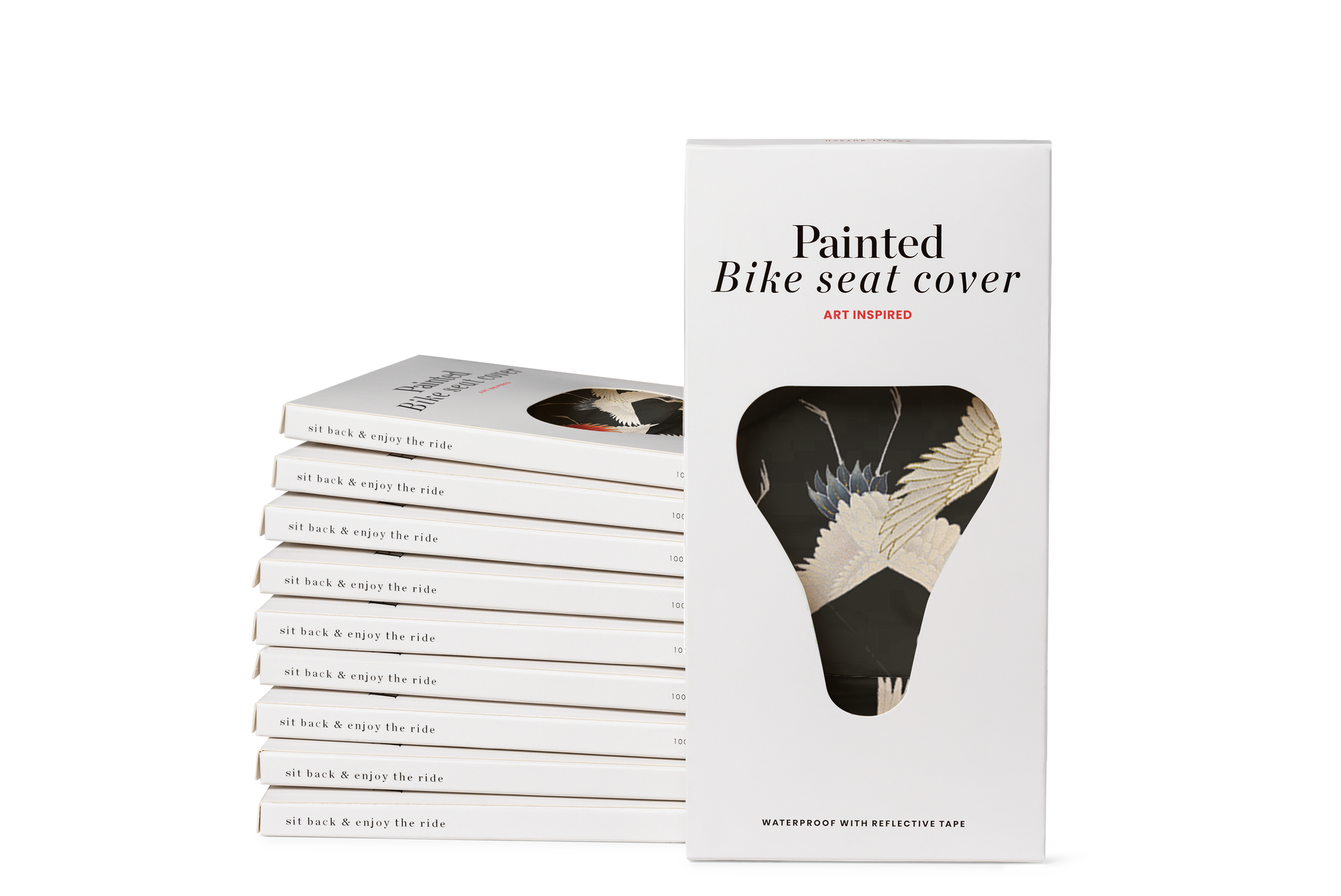 This bike seat cover is inspired by a pattern design of Japanese cranes, pictured on a 100-year old 'furisode'. This is a precious Japanese kimono only worn by young, unmarried women. The word 'kimono’ literally means ‘something to wear’, a slight hint that the most important feature is its pattern, taken from nature and bursting with symbolism.