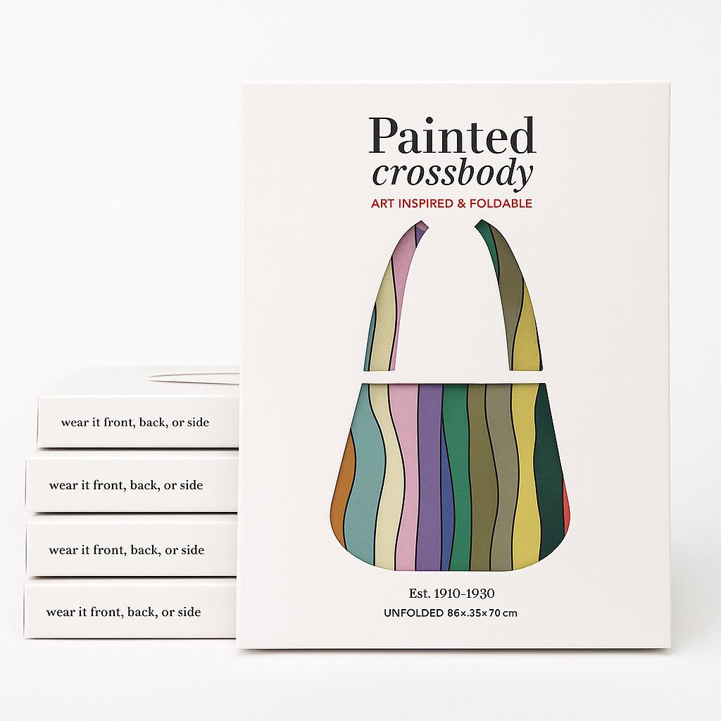 This foldable crossbody bag is inspired by the portrait Austrian pioneer Egon Schiele (1890-1918) made of his young wife Edith. Schiele is known for his passionate audacity, painting eye- popping nudes that practically come to life on canvas. But here’s the twist: his style changes direction with ‘Portrait of Edith’, a painting that is all about sweetness. Edith wears a dress made from the curtains in his studio, a touching symbol.