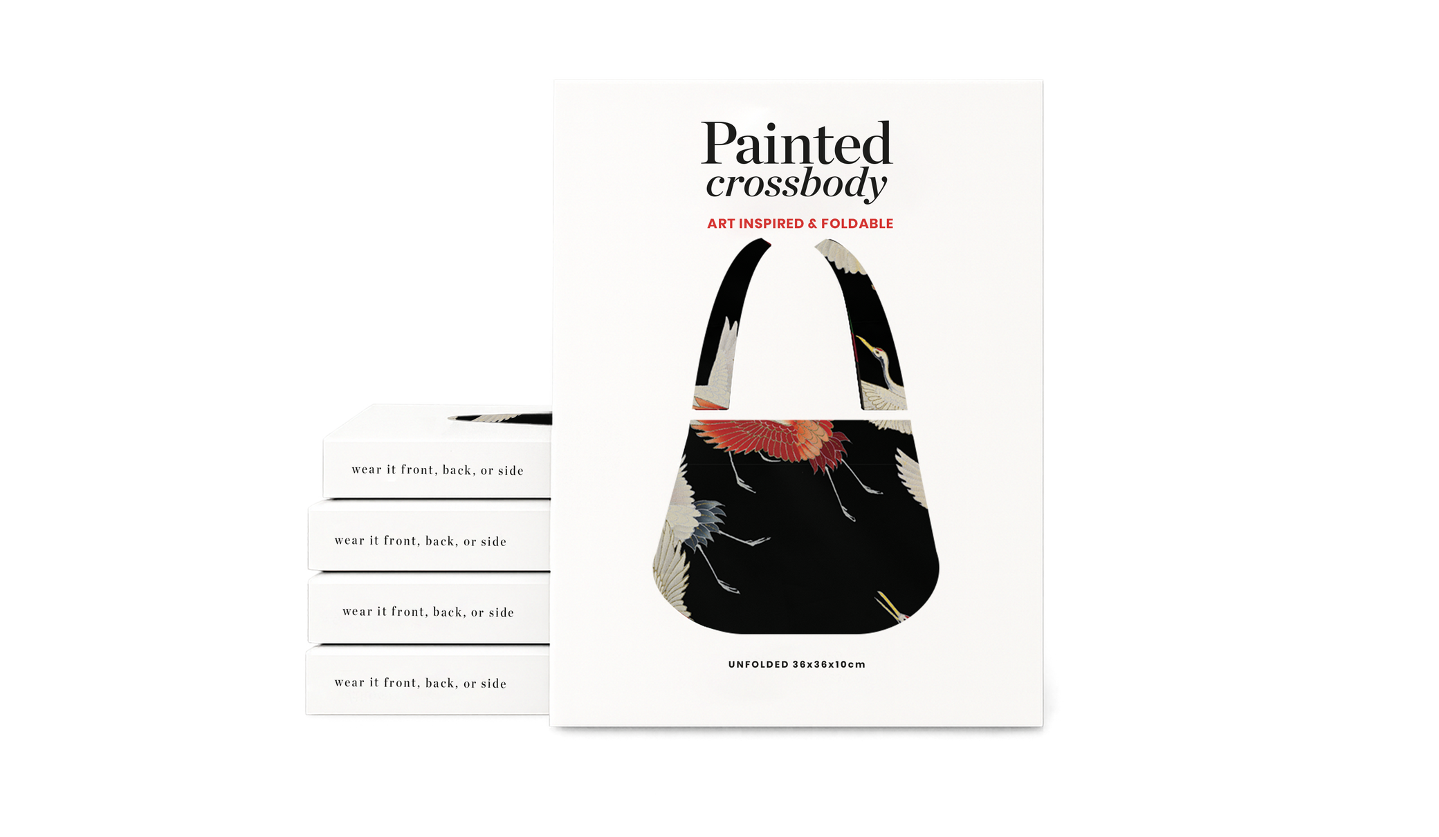 This foldable crossbody bag is inspired by a pattern design of Japanese cranes, pictured on a 100-year old 'furisode'. This is a precious Japanese kimono only worn by young, unmarried women. The word 'kimono’ literally means ‘something to wear’, a slight hint that the most important feature is its pattern, taken from nature and bursting with symbolism.