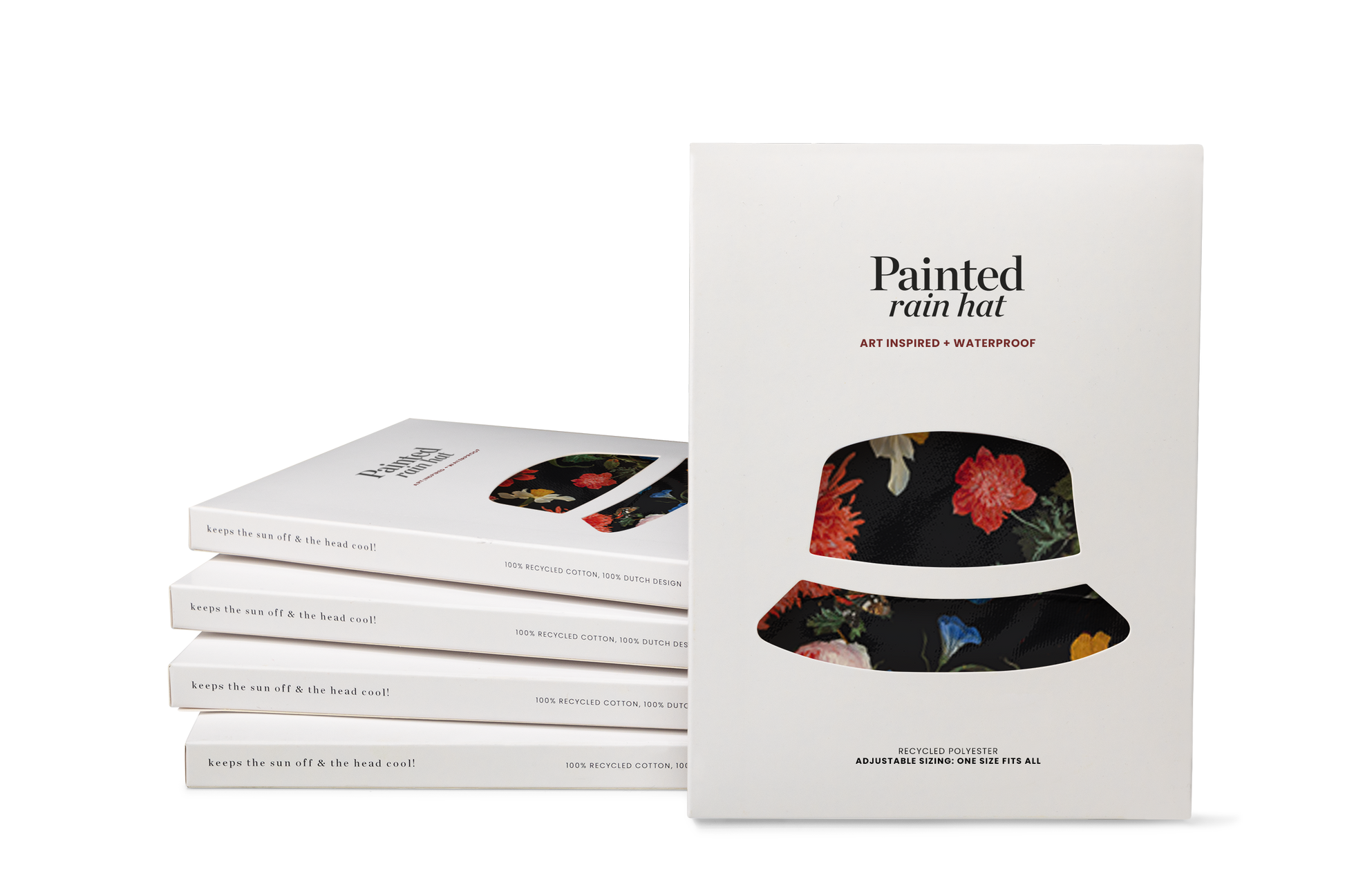 This rain hat is inspired by a flower still life by Jan Davidsz. de Heem, one of the most famous Dutch still life painters of the 17th century.
