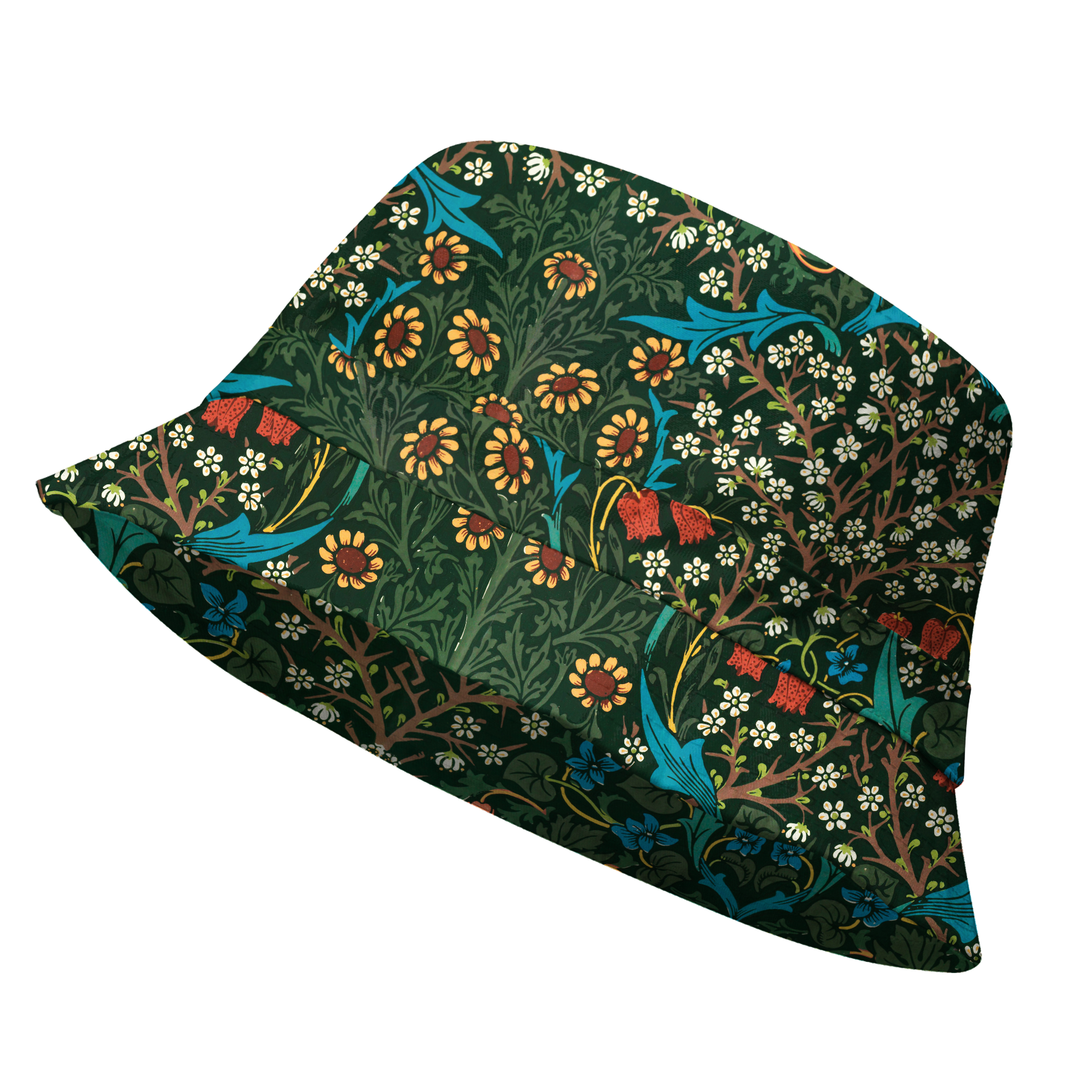This rainhat is inspired by a pattern design by John Henry Dearle (1860–1932), a British artist and designer trained by the legendary William Morris. Morris pioneered a new approach to design and manufacturing, advocating hand craftsmanship during a time when industrial mass production was at its peak. As a social reformer who fought against class division, he often gave street-corner speeches, participated in marches, and even helped found the Socialist League.
