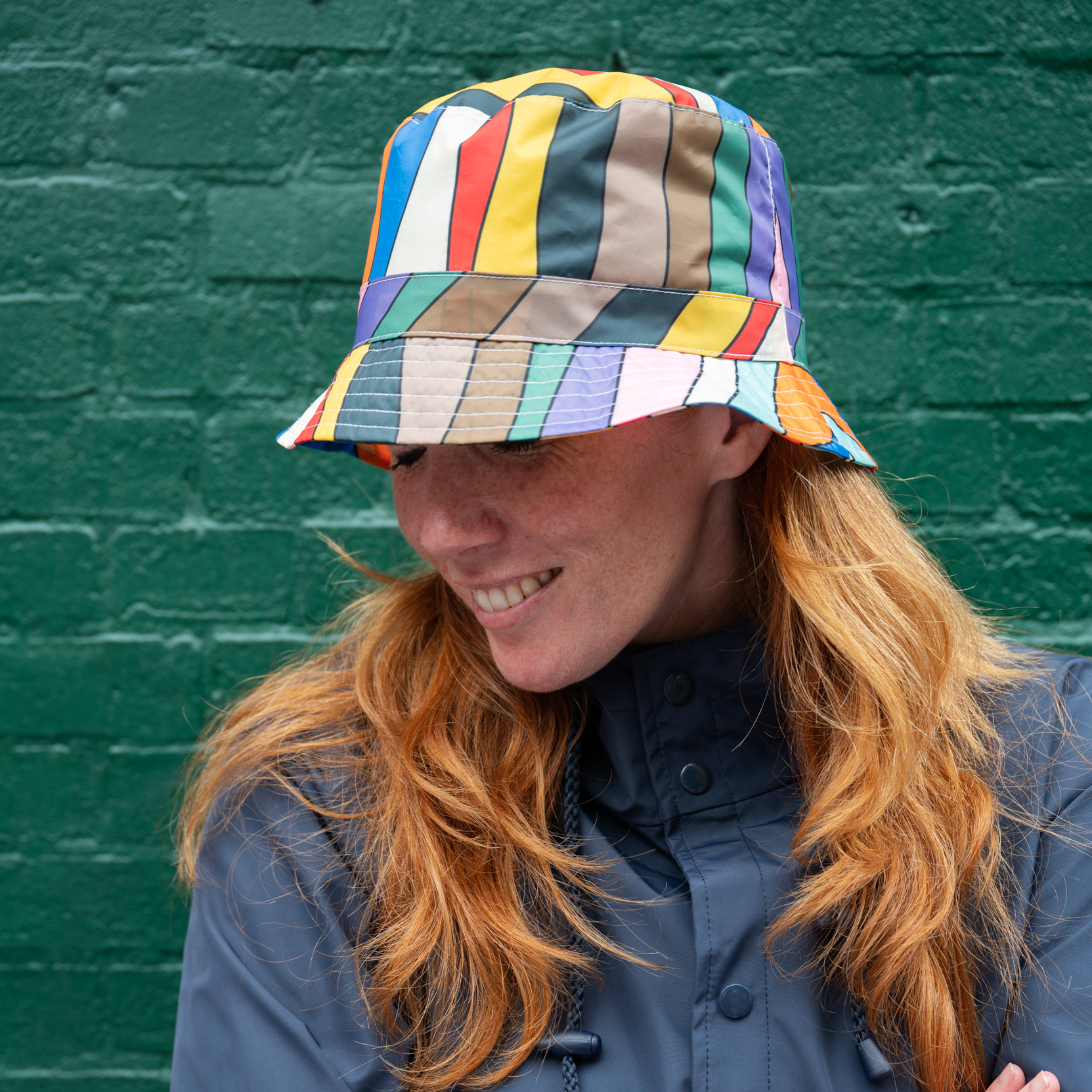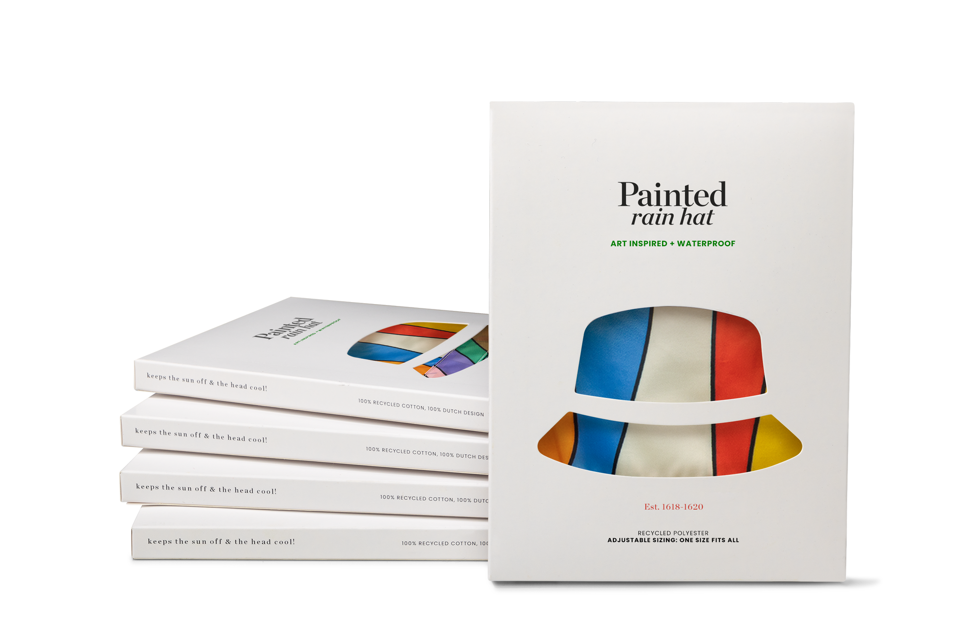 This rain hat is inspired by the portrait Austrian pioneer Egon Schiele (1890-1918) made of his young wife Edith. Schiele is known for his passionate audacity, painting eye- popping nudes that practically come to life on canvas. But here’s the twist: his style changes direction with ‘Portrait of Edith’, a painting that is all about sweetness. Edith wears a dress made from the curtains in his studio, a touching symbol.
