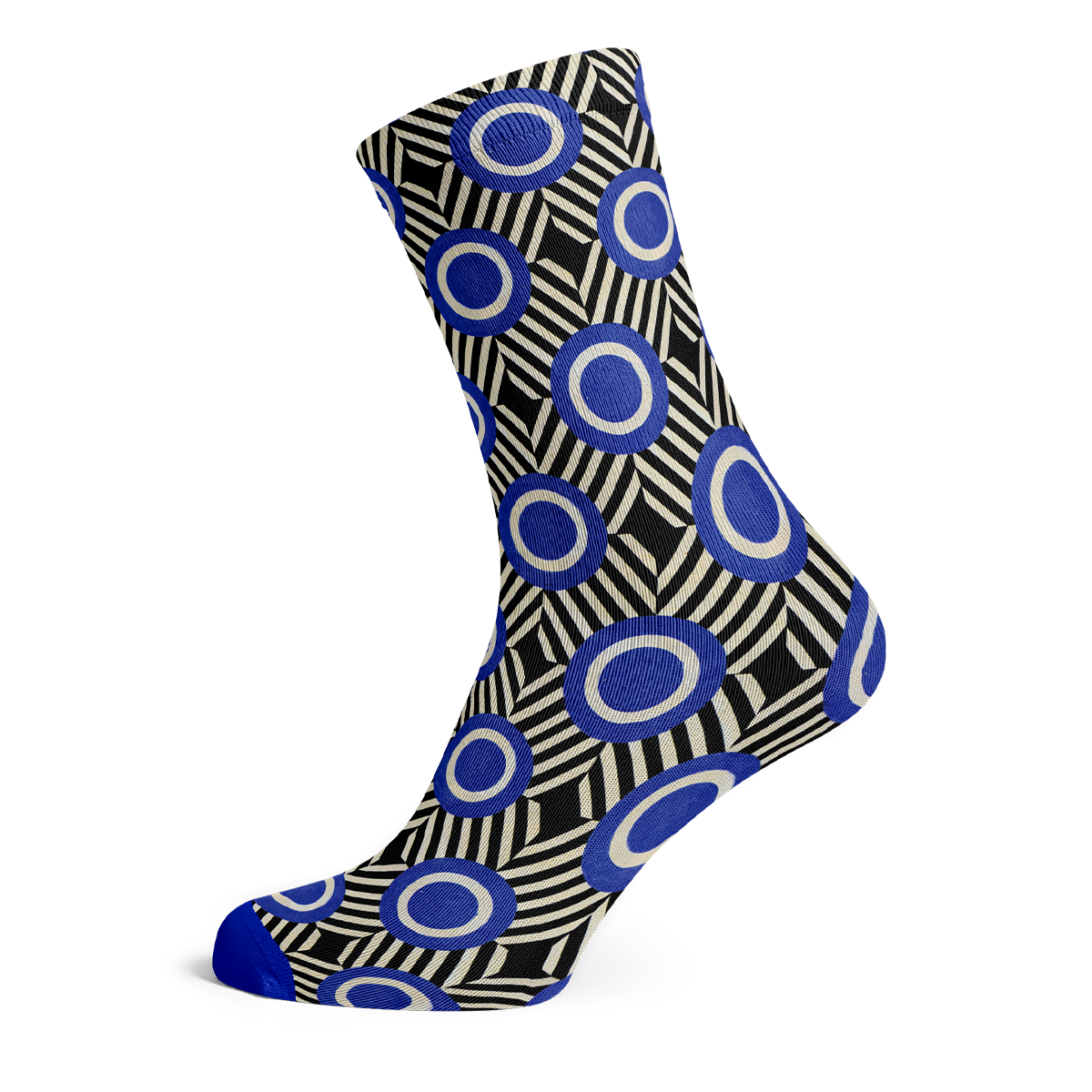 These socks are inspired by a fabric design of Lyubov Popova, a rebel painter who danced to her own avant-garde groove in the early 20th century. Born in 1889, she was like the cool cousin of Kandinsky and Malevich, turning heads and breaking rules in the art world. But let’s talk about her pattern designs: imagine colourful geometrics exploding on fabric, with each thread colored exotically.